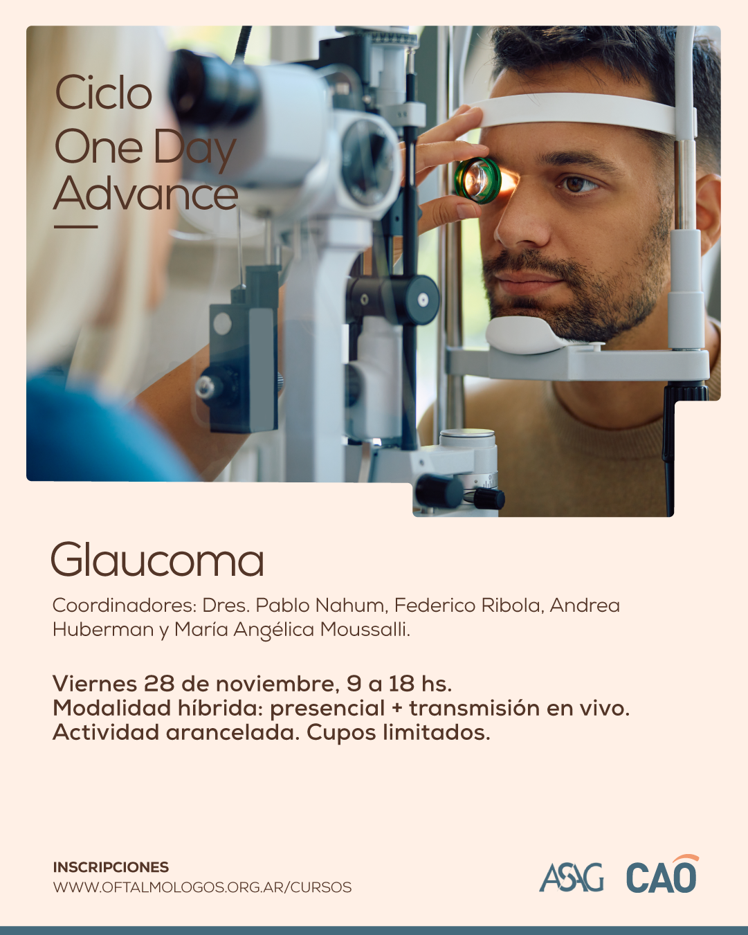 El ciclo One Day Advance ofrece jornadas de actualización intensiva en distintas áreas de la oftalmología. En esta edición, dedicada al glaucoma, los participantes podrán profundizar en el diagnóstico, tratamiento y manejo clínico de la enfermedad junto a especialistas referentes.