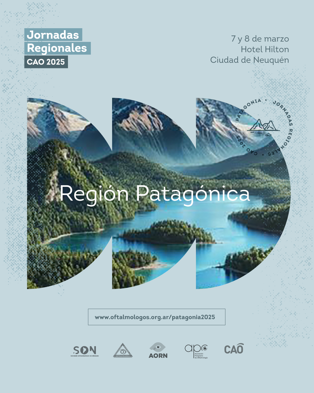 Lo esperamos el viernes 7 y sábado 8 de marzo en la ciudad de Neuquén, para una nueva edición de las Jornadas Regionales CAO Patagonia, organizado de manera conjunta por la Sociedad Oftalmológica de Neuquén (SON), la Asociación Austral de Oftalmología (AAO), la Asociación de Oftalmólogos de Río Negro (AORN), la Asociación Pampeana de Oftalmología (APO) y el Consejo Argentino de Oftalmología (CAO), en representación de los colegas de Tierra del Fuego, Santa Cruz, Chubut, Río Negro, Neuquén y La Pampa.